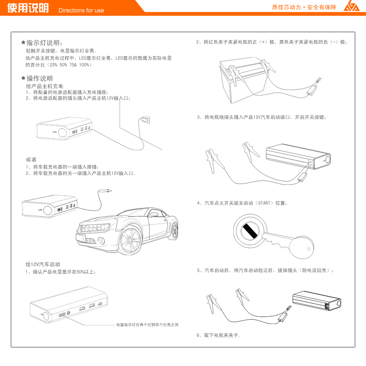 - 昂佳A3多功能汽車應急啟動電源說明書詳解